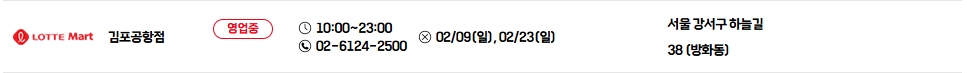 - 휴무일 : 2월 9일 일요일, 2월 23일 일요일